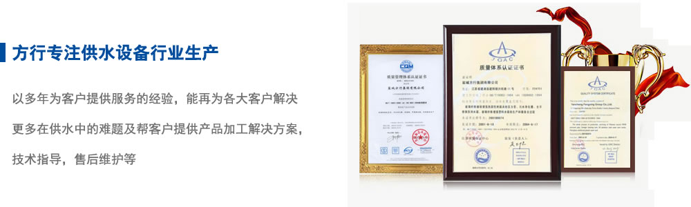 鹽城方行集團有限公司秉承“務(wù)實、誠信、拼搏、創(chuàng)新”的企業(yè)精神,經(jīng)歷了近數(shù)十年的歷程取得了跨越式的發(fā)展。高起點才會有更高的品質(zhì),優(yōu)雅的環(huán)境,先進的設(shè) 備,高效的團隊,造就了一批批優(yōu)質(zhì)的產(chǎn)品。堅持質(zhì)量、用戶至上的宗旨,公司全面通過了ISO國際質(zhì)量體系認證,是制造供水成套設(shè)備廠家 之一。經(jīng)悉心打造,已享有較高的知名度,產(chǎn)品遍布全國,不斷研發(fā)全新產(chǎn)品,滿足消費者的需求 | |